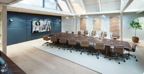 Die Room Vision PTZ Kamera bringt Bewegung in hybride Meetings: Sie folgt dem aktiven Sprecher oder dem präsentierenden Dozenten automatisch. Die Installation erfolgt dank Video-over-IP mit minimalem Verkabelungsaufwand. In Kombination mit Cisco Mikrofonen und Room Kits unterstützt sie Multi-Kamera-Set-ups mit überblendenden Perspektiven für ein kinoreifes Konferenzerlebnis.