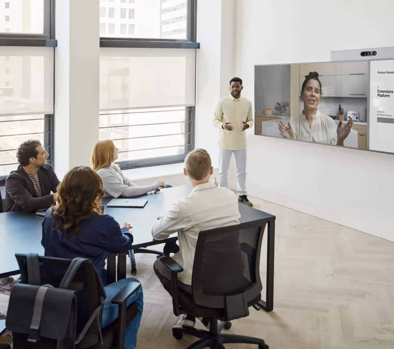 Das Room Kit Plus richtet sich an Unternehmen, Hochschulen und Verwaltungen mit mittleren bis großen Meetingräumen. Ob für Vorstandsrunden, hybride Schulungen oder Projektbesprechungen: Die Lösung schafft professionelle Voraussetzungen für kollaboratives Arbeiten vor Ort und remote.