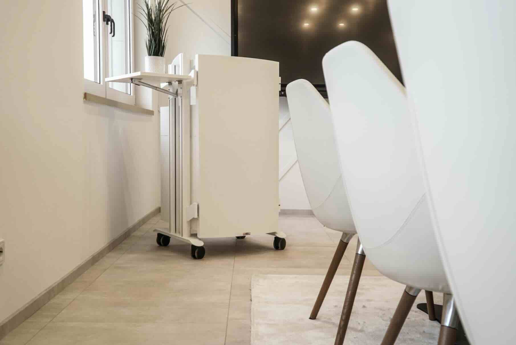 Das Conen Rednerpult V ist ein modulares Rednerpult, das speziell für den Einsatz von Medientechnik optimiert ist. Ausgestattet mit einem 19″-Modul (11HE) und einer abschließbaren Glastür, bietet es sicheren Stauraum für Technik. Mit einem mobilen Fahrgestell und einer Schutzleiste am Rednermodul ist das Pult flexibel einsetzbar. Die Optik kann durch verschiedene Dekore und Farben individuell angepasst werden. Es ist ideal für Anwender, die ein optisch anpassbares und technikfreundliches Rednerpult benötigen.
