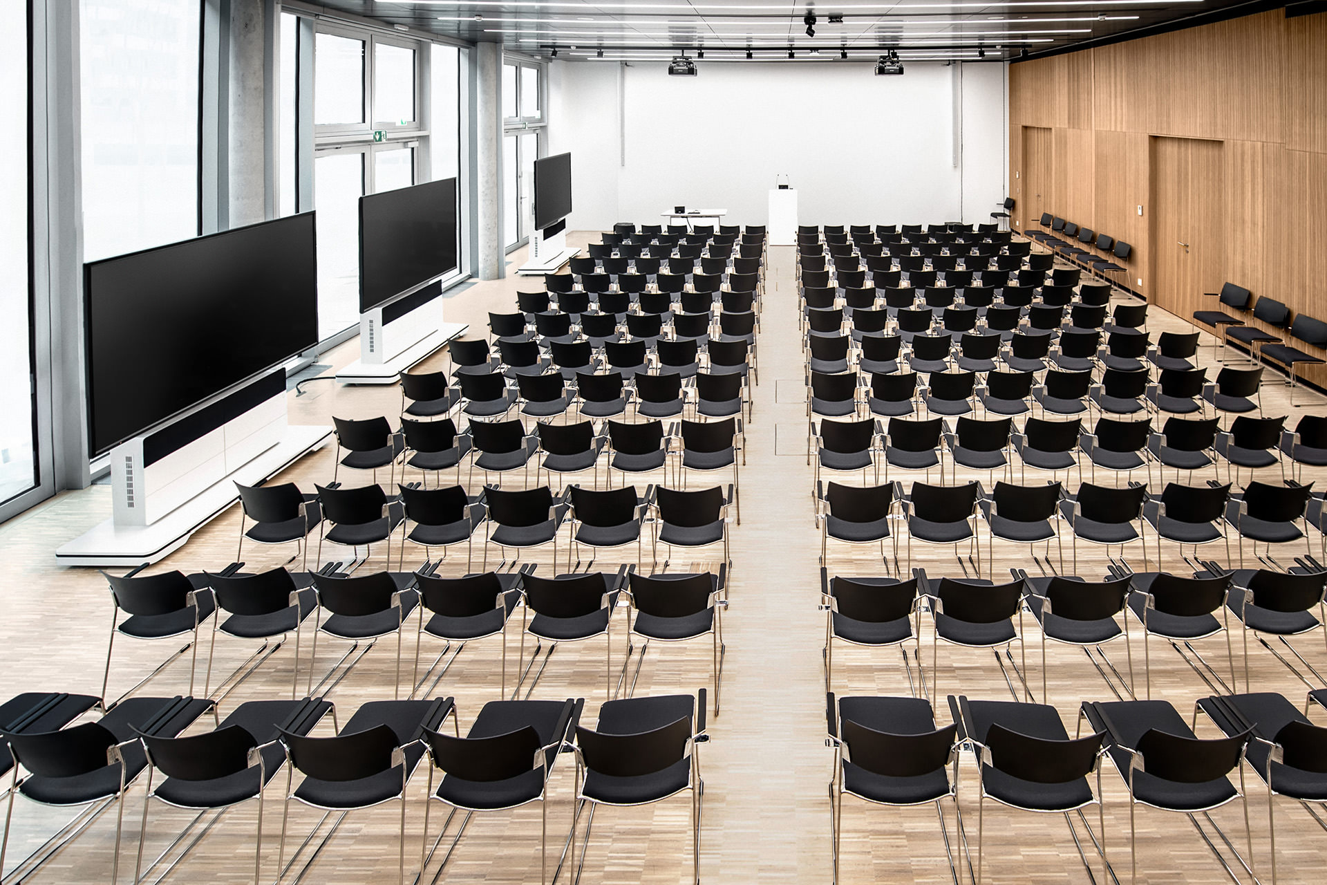 Holzmedia Medienmöbel S1 bietet viel Stauraum, eine einfache Technikintegration (für Videokonferenzen & Unified Communications). Ist an der Wand montierbar oder mobil, mit einer Bodenplatte, zu positionieren. Höhenverstellbar und für (Touch-) Displays (55″ – 98″) geeignet.