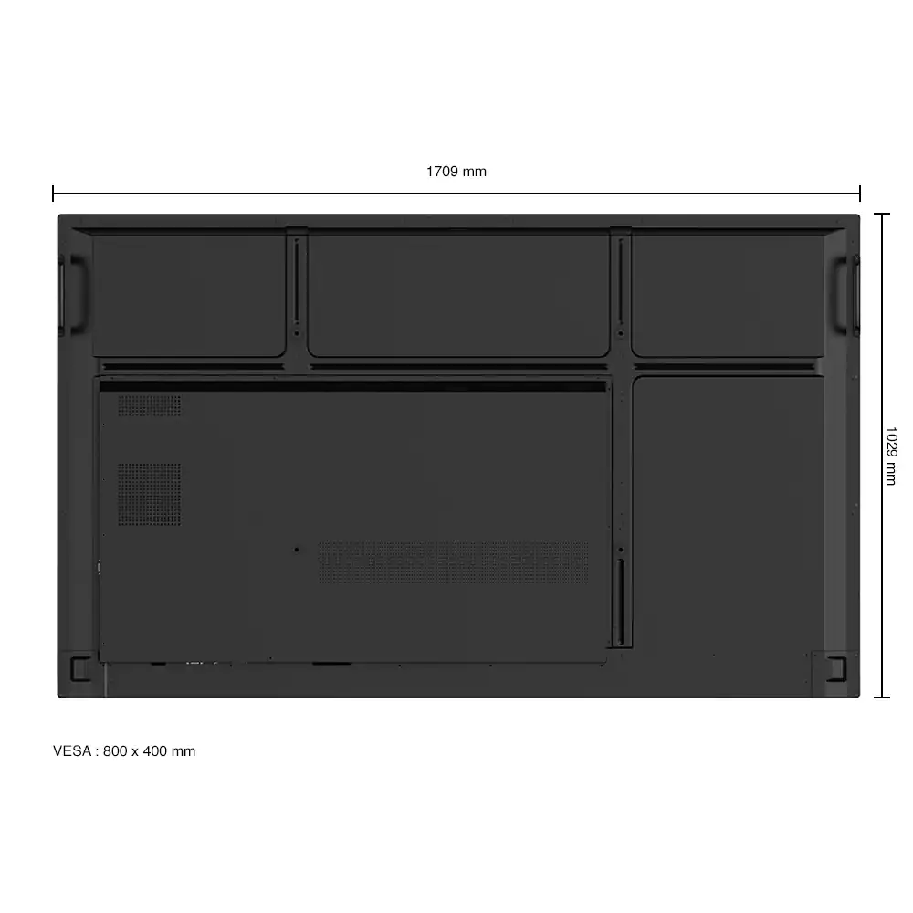Das System bietet Anschlüsse für USB 2.0, USB 3.1 Gen 1, USB Typ-C, USB Touch, HDMI, HDMI Out in 4K, RJ45 in/out, RS232, Audio in/out, VGA und SPDIF. Unterstützt werden Windows, Linux, Mac, Android und Chrome. Optional lässt sich das Display mit einem Windows OPS oder einer Google-zertifizierten Umgebung erweitern. So kann die Arbeitsumgebung je nach Organisation stärker auf klassische Windows-Nutzung oder auf eine Google-orientierte Umgebung ausgerichtet werden.