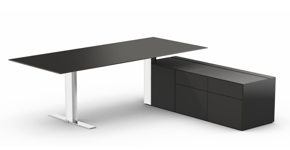 • Passende Container und Sideboards, die in verschiedenen Größen erhältlich sind, ergänzen das Schreibtischprogramm.