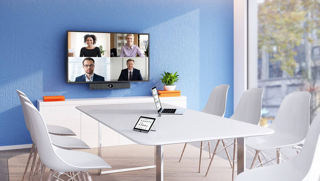 - Nahtloser Gerätewechsel; starten Sie Ihre Videokonferenz-Meetings auf dem Smartphone und führen Sie dieses im Konferenzraum weiter